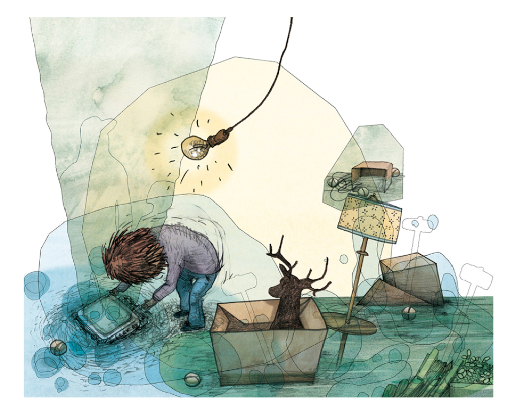 Udvalgte illustrationer fra billedbogen Huset på havets bund, af Martin Glaz Serup, Udgivet på Gyldendal 2018